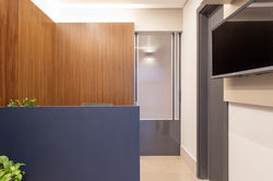A nova sede dessa empresa exigia um ambiente formal, sóbrio..